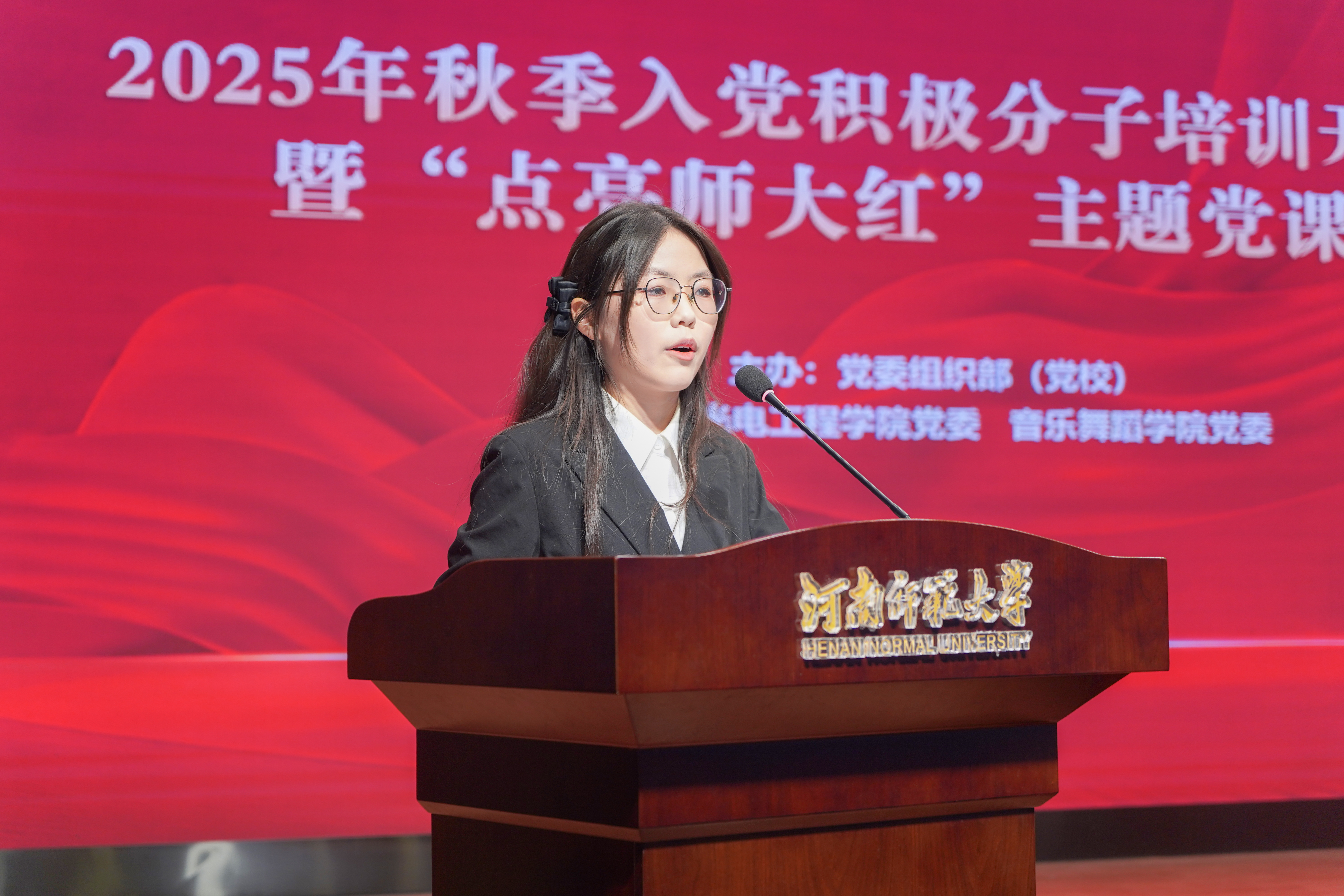 活动在庄严的国歌声中拉开了序幕。开班仪式上,党委组织部副部长王令耀宣读了2025年秋季入党积极分子培训方案,光电工程学院2023级电子信息工程专业本科生张松悦作为入党积极分子代表进行了发言。